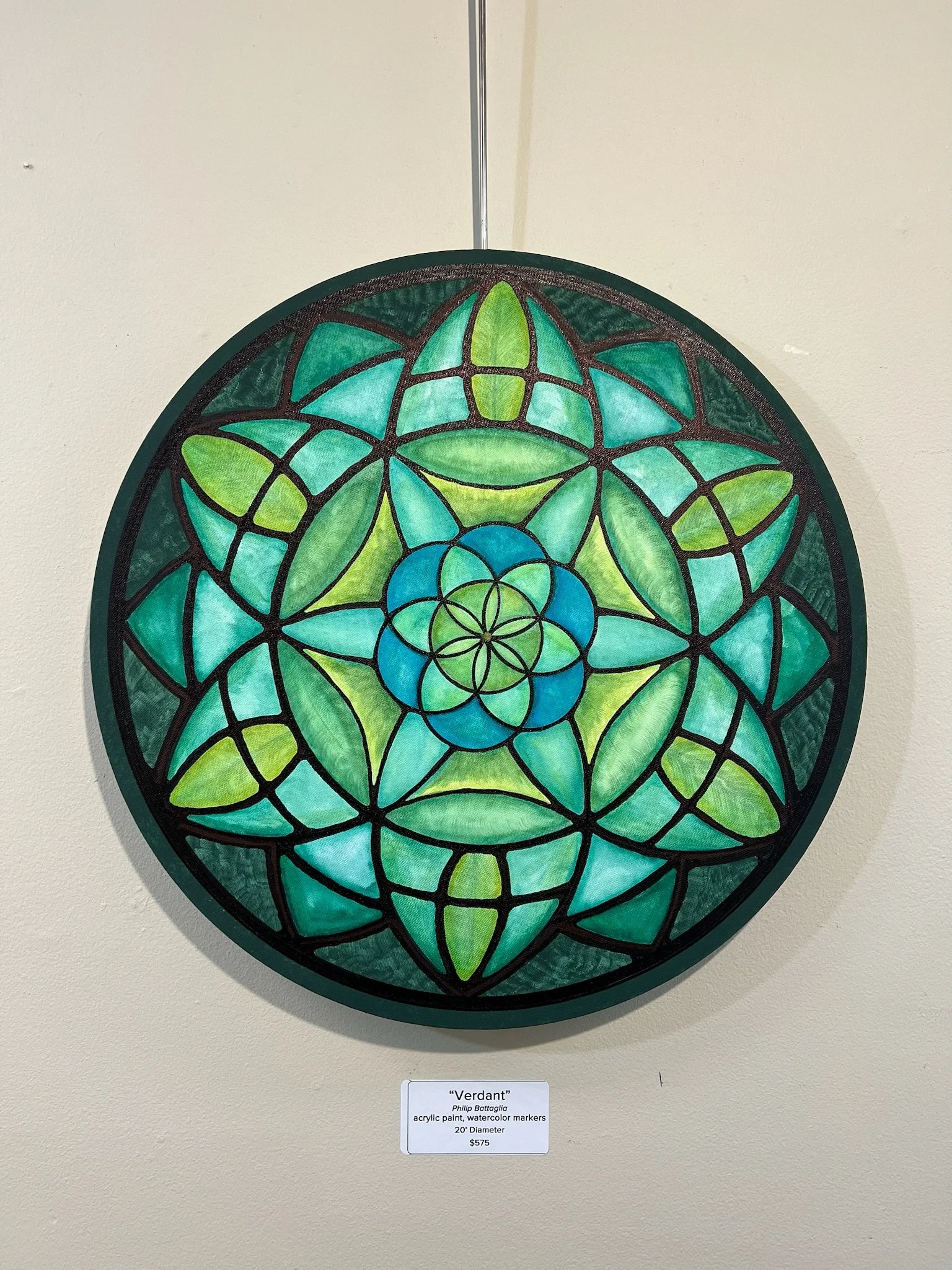 "Verdant" acrylic paint and watercolor markers 20" diameter $350 Blush Tea and Coffee