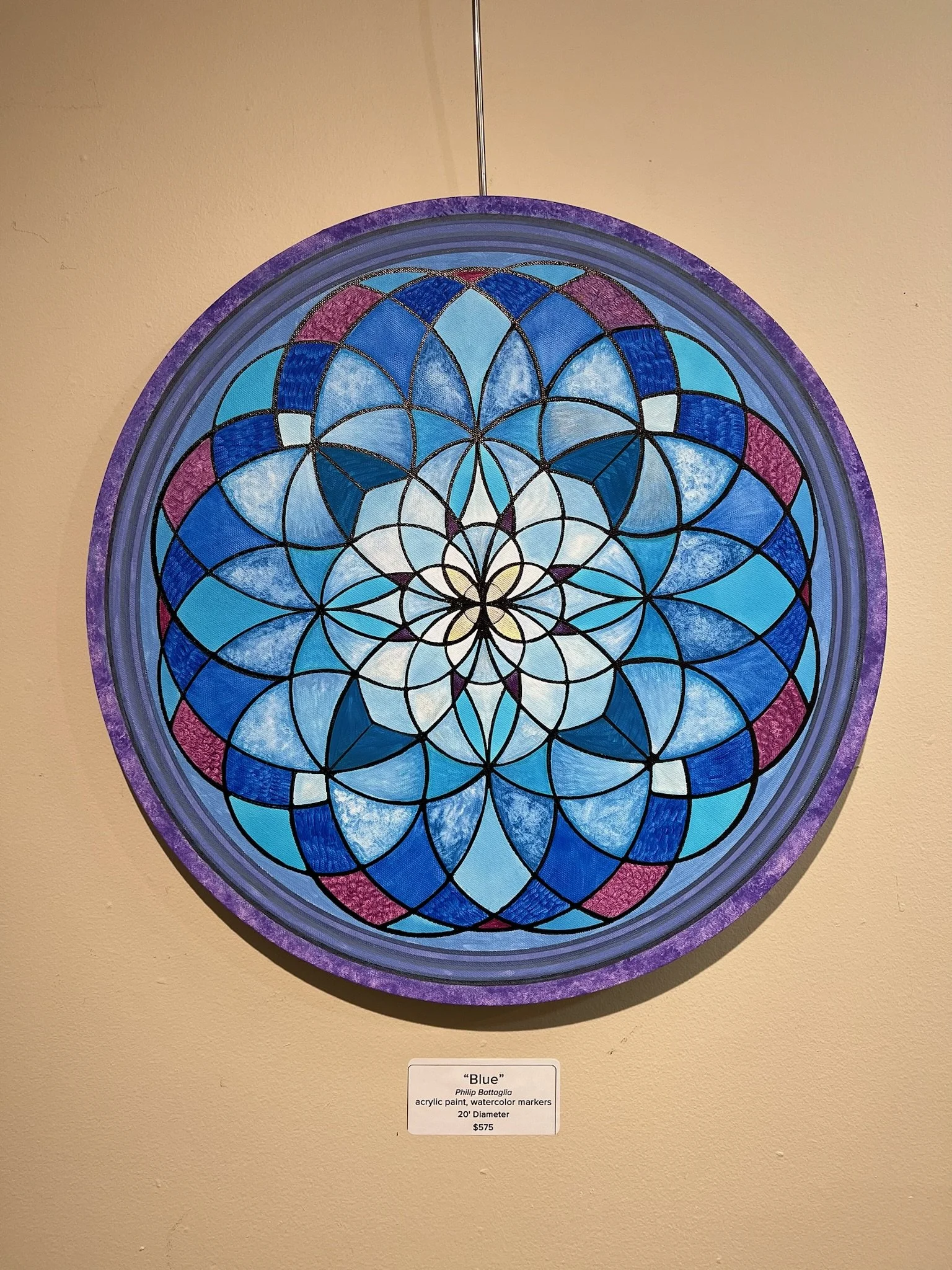 "Blue" acrylic paint and watercolor markers 20" diameter $350 Blush Tea and Coffee