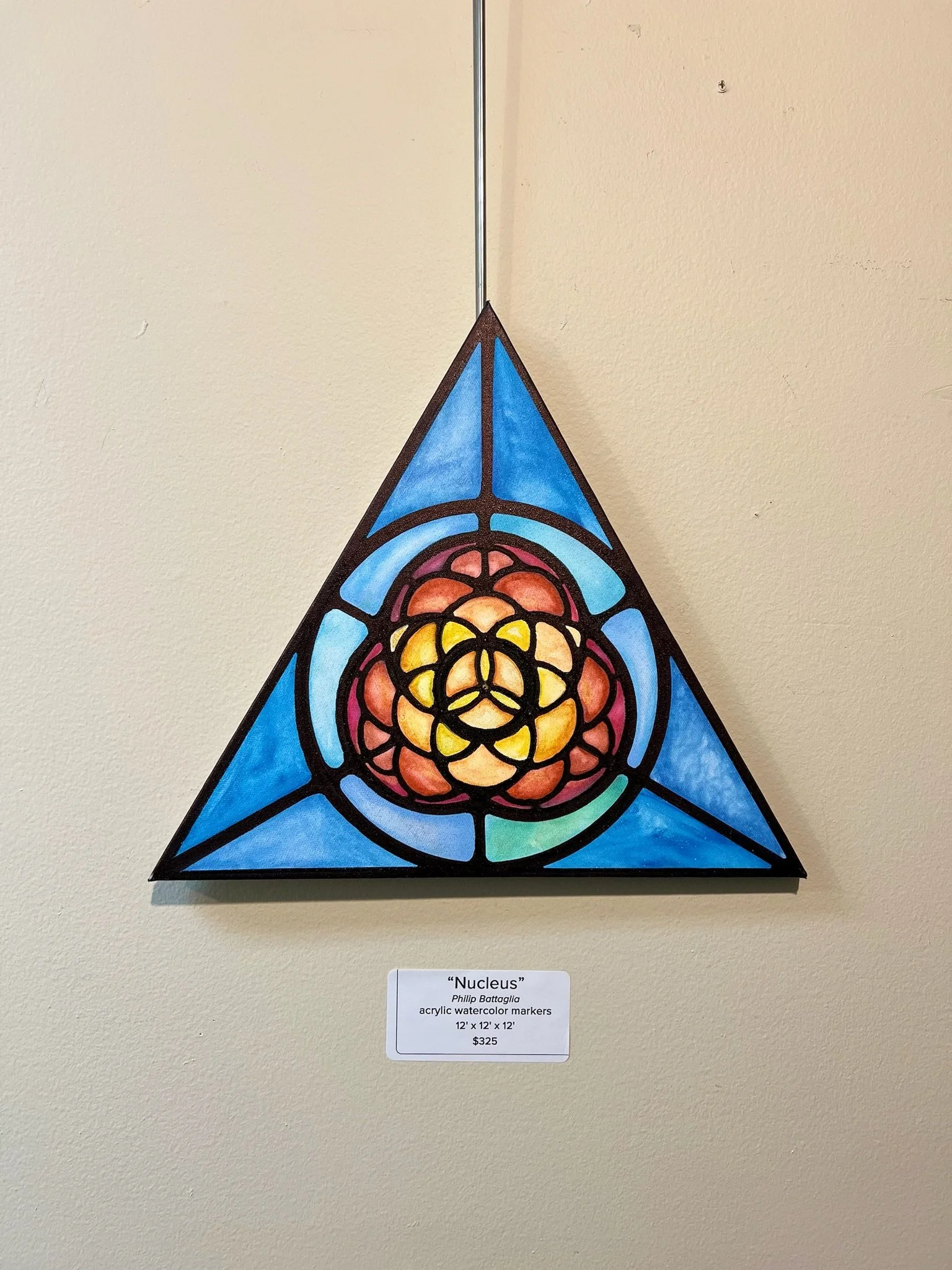 "Nucleus" acrylic paint and watercolor markers 12" x 12" x 12" $175 Blush Tea and Coffee