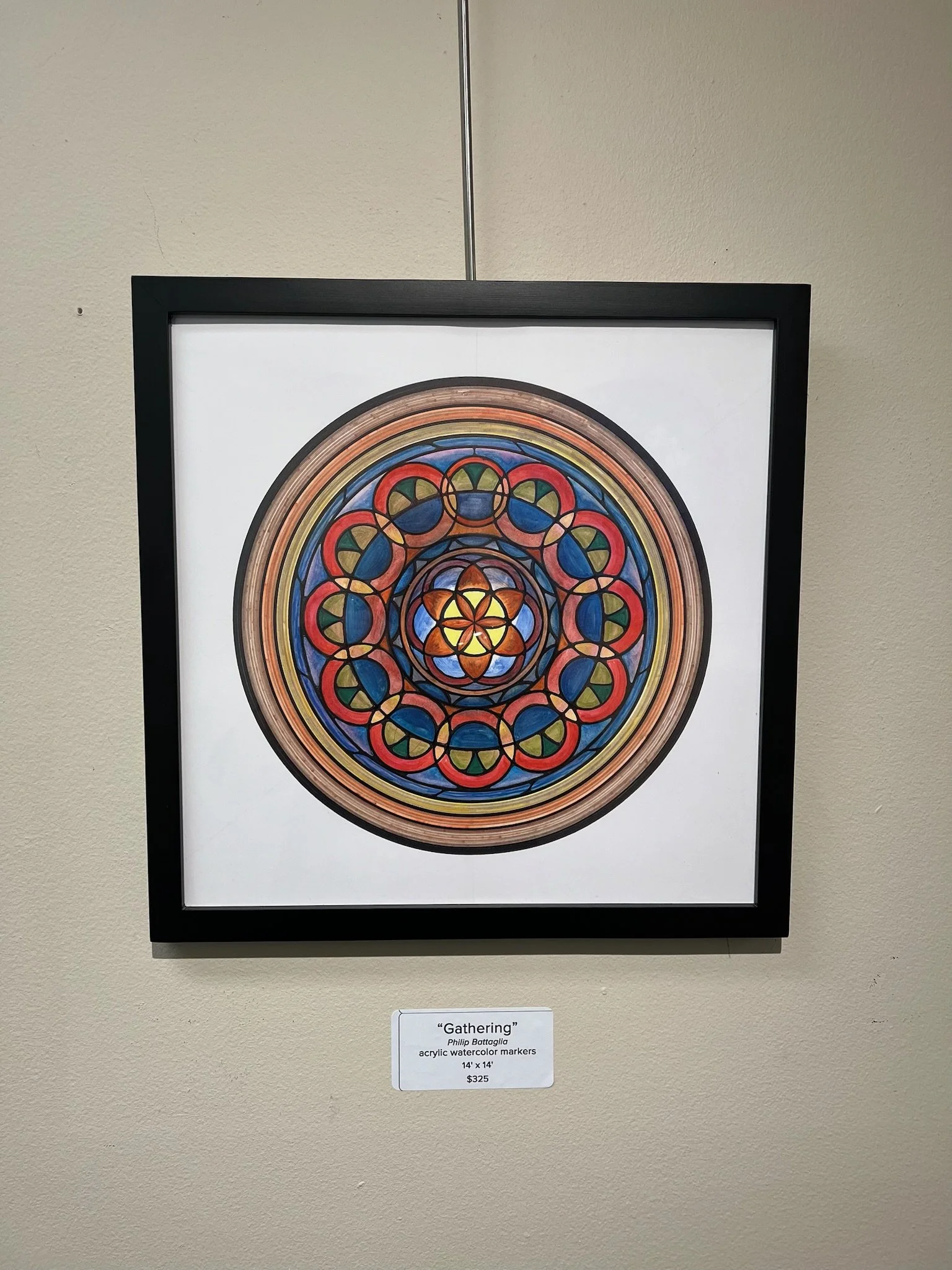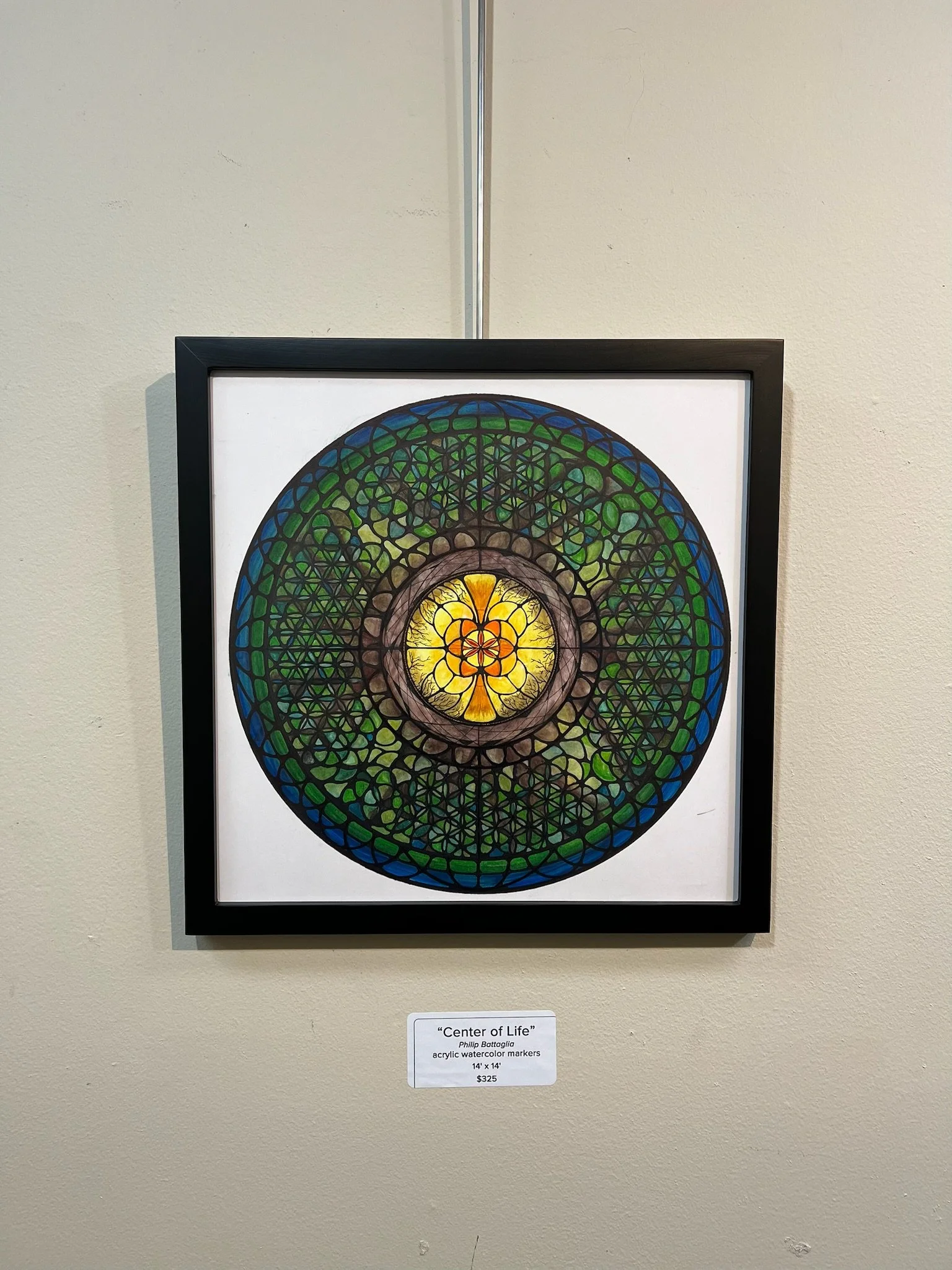 "Center of Life" acrylic paint and watercolor markers 14" x 14" $175 Blush Tea and Coffee