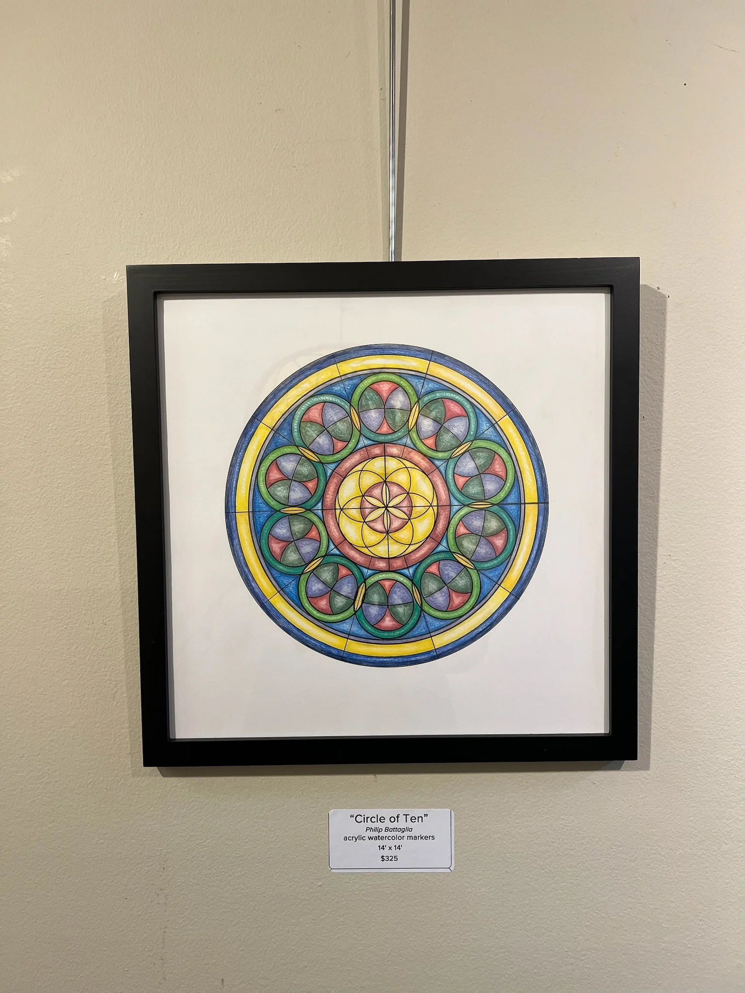 "Circle of Ten" acrylic paint and watercolor markers 14" x 14" $175 Blush Tea and Coffee