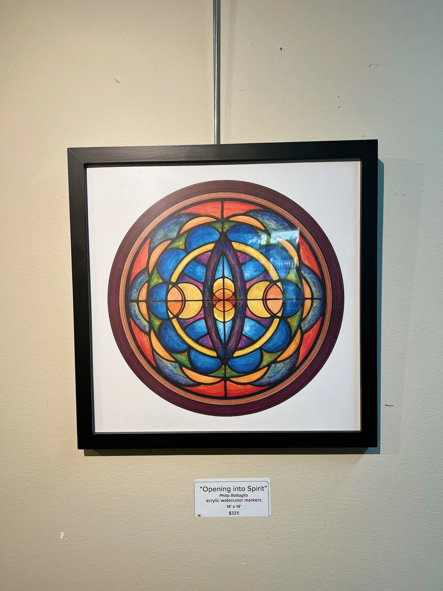 "Opening into Spirit" acrylic paint and watercolor markers 14" x 14" $175 Blush Tea and Coffee